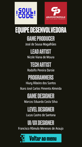 Este projeto foi desenvolvido como parte do trabalho de conclusão do Bootcamp 'Desenvolvedor de Games', uma iniciativa promovida pela TNT Energy Drink e Grupo Petrópolis, em parceria com a SoulCode Academy.