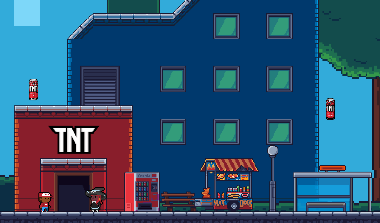 TNT EXPRESS é um jogo de plataforma vertical com um toque de fantasia urbana. Você controla um jovem empreendedor, que usa suas habilidades de parkour e dashes aéreos para atravessar a cidade e entregar TNTs — energéticos que dão aquele gás pra enfrentar qualquer desafio.